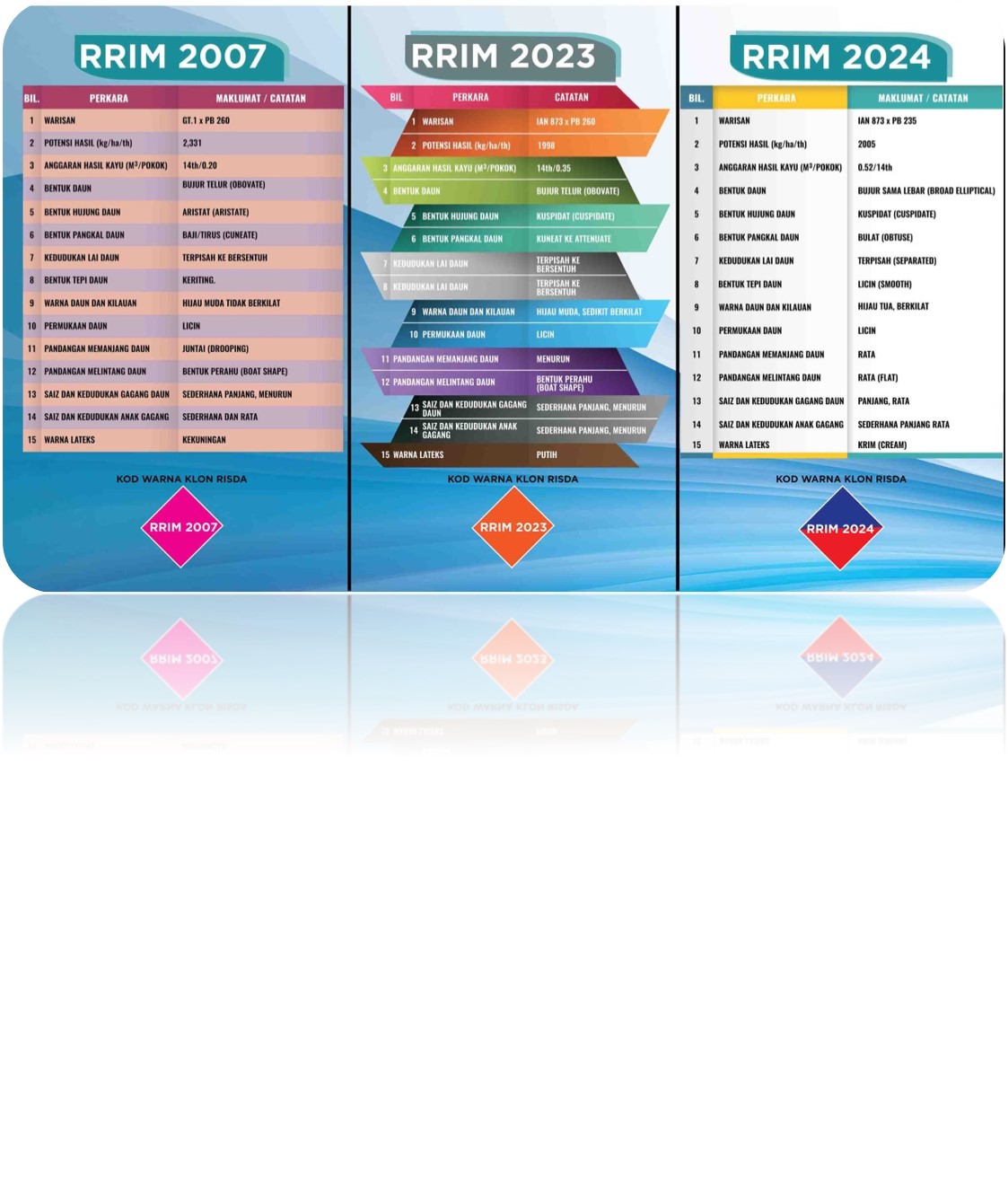 In addition to that, RISDA also emphasizes on the seed clones that are supplied with high yield potential, fast growth and resistance to disease and wind resistance.