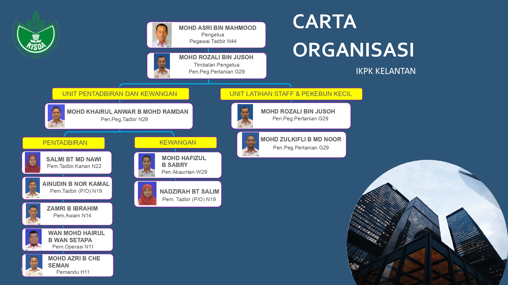 Bil Tahun Nama 1. Jun 2008 - Ogos 2010 EN. SAHARUDDIN BIN DAUD 2. Sept 2010 - Sept 2011 EN. AMRAN BIN MOHAMAD 3. Okt 2011 - Nov 2012 PN. MALINI BINTI MOHD ROSELI 4. Nov 2012 - Ogos 2013 EN. MOHD SYAZWAN BIN MOHD NADERY 5. Sept 2013 - Nov 2016 NOOR HAZREYANTI BINTI SOHRI 6. Dis 2016 - Mac 2018 NUR NAZIHAH BINTI OTHMAN 7. Apr 2018 - Jan 2019 EN. ABDUL RAZAK BIN PAK SU 8. Jan 2019 - Ogos 2023 EN. MOHD FARID BIN MOHD NOR 9. Okt 2023 - Sekarang EN. MOHD ASRI BIN MAHMOOD -